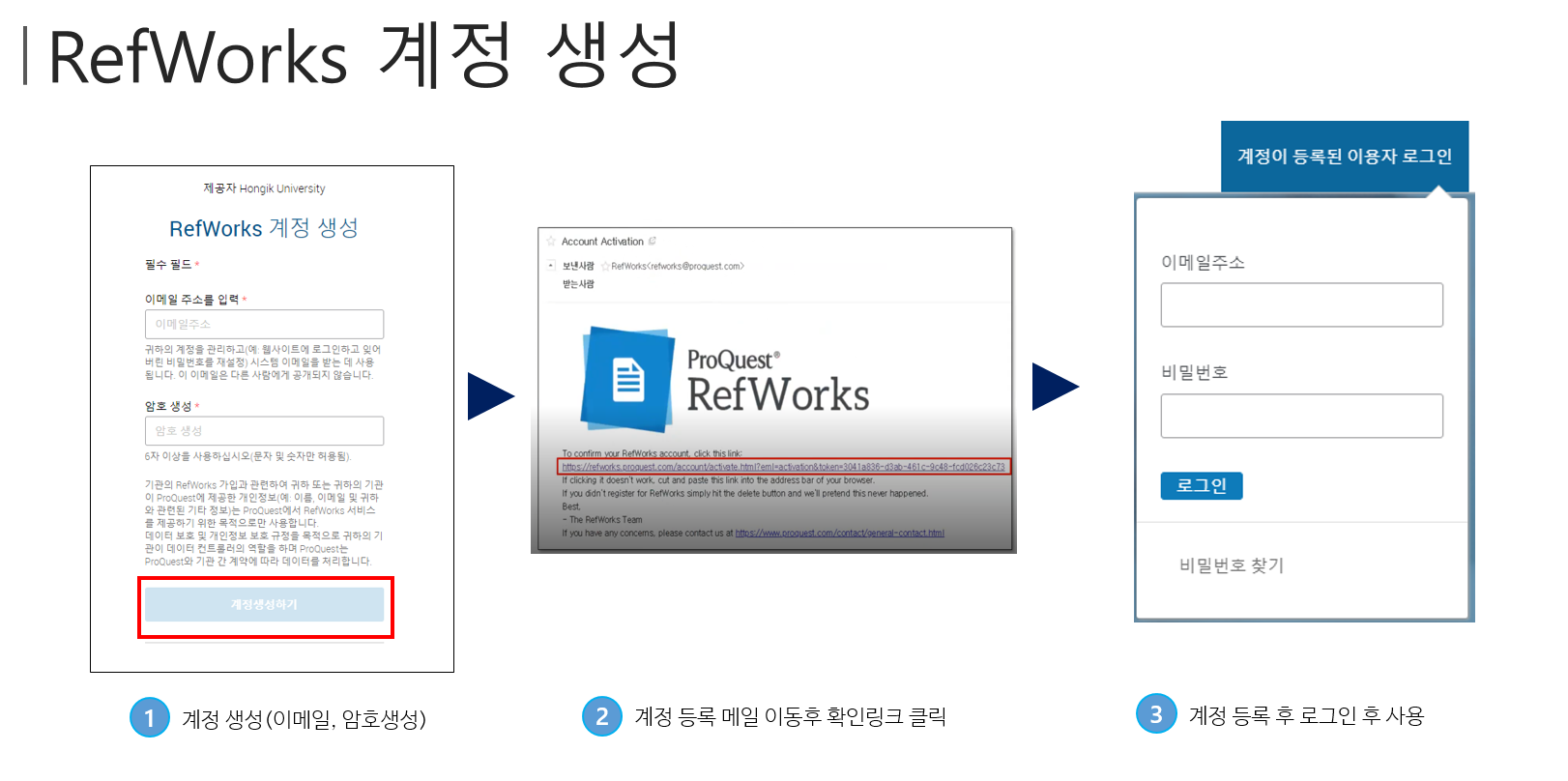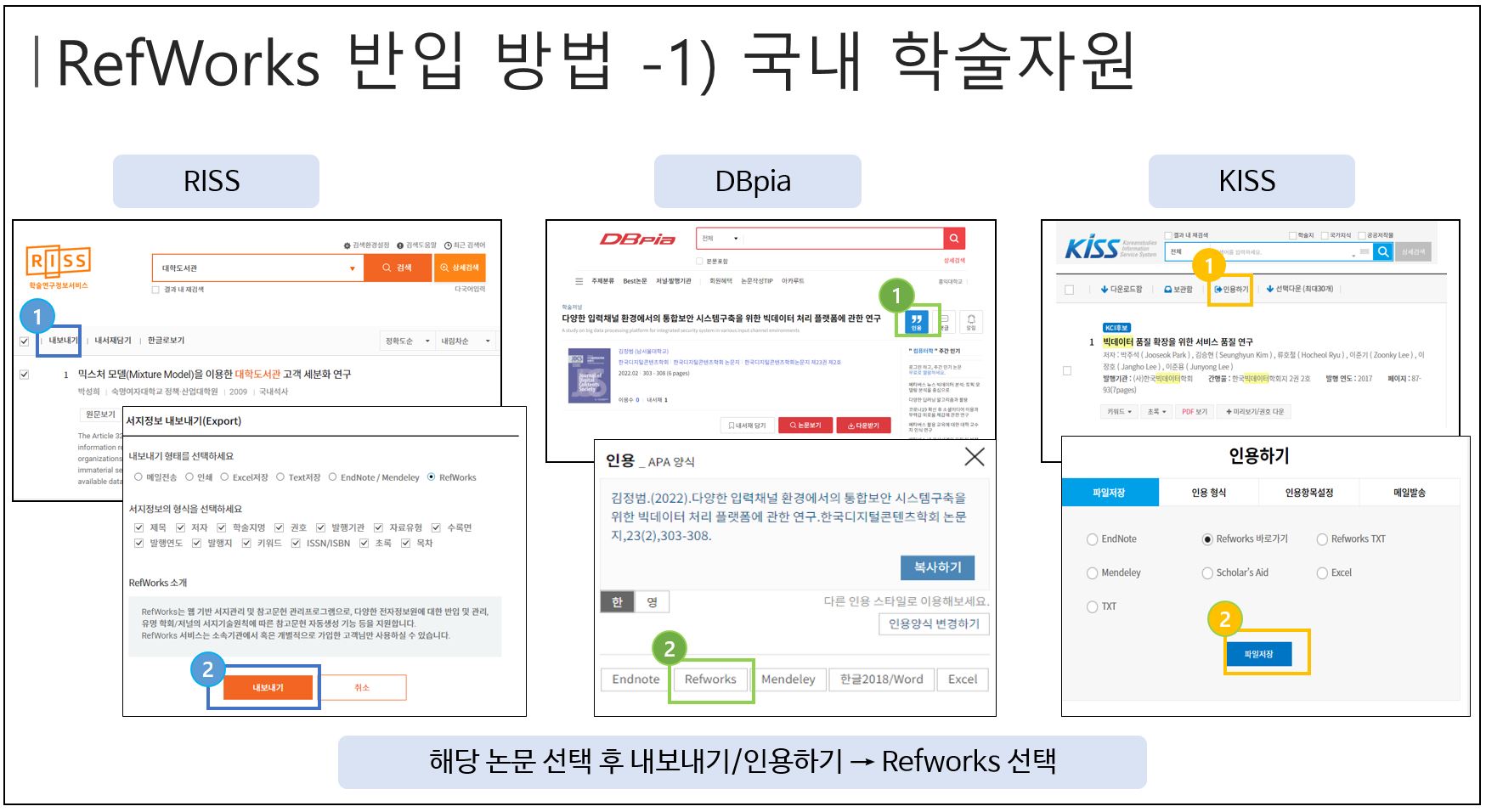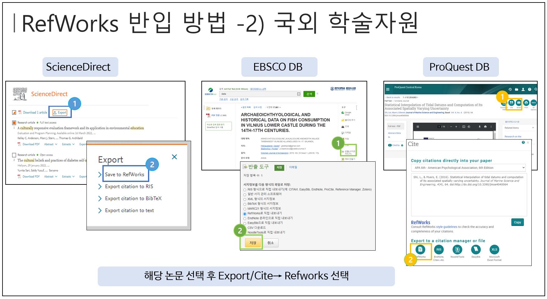RefWorks에 대한 자세한 가이드(이용방법, 교육 영상)는 다음과 같다.