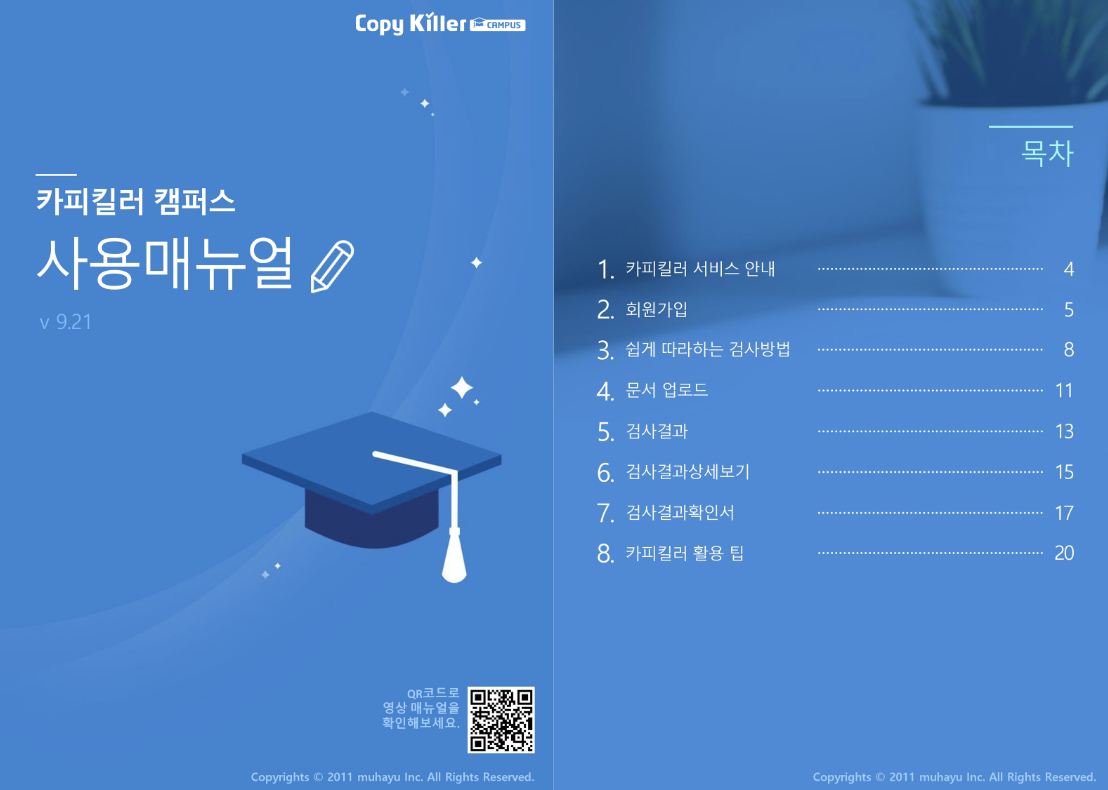 - 대학, 연구기관, 교육관련 공공기관 등 총 1,600여개 기관에서 논문, 연구보고서, 과제물, 자기소개서 등 다양한 문서를 자가 점검하기 위한 목적으로 사용됨