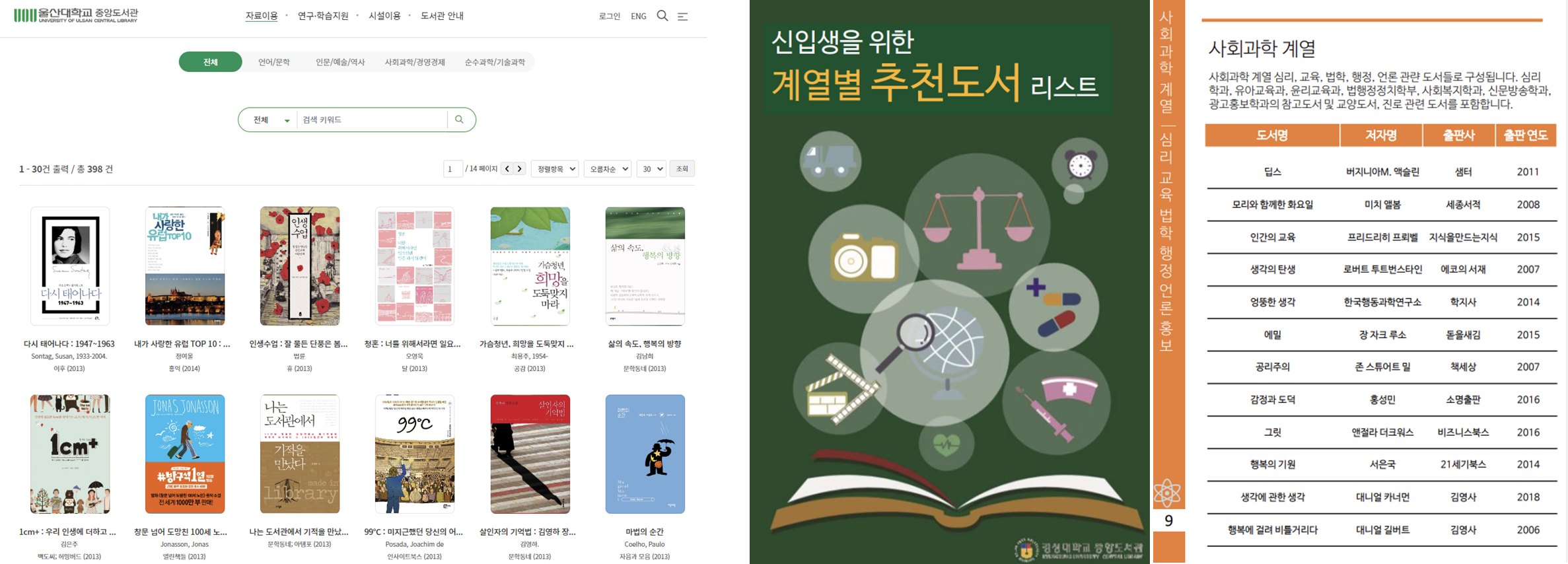 최근 들어 대학도서관에서는 다양한 도서를 주제별로 추천하는 서비스가 늘고 있다.