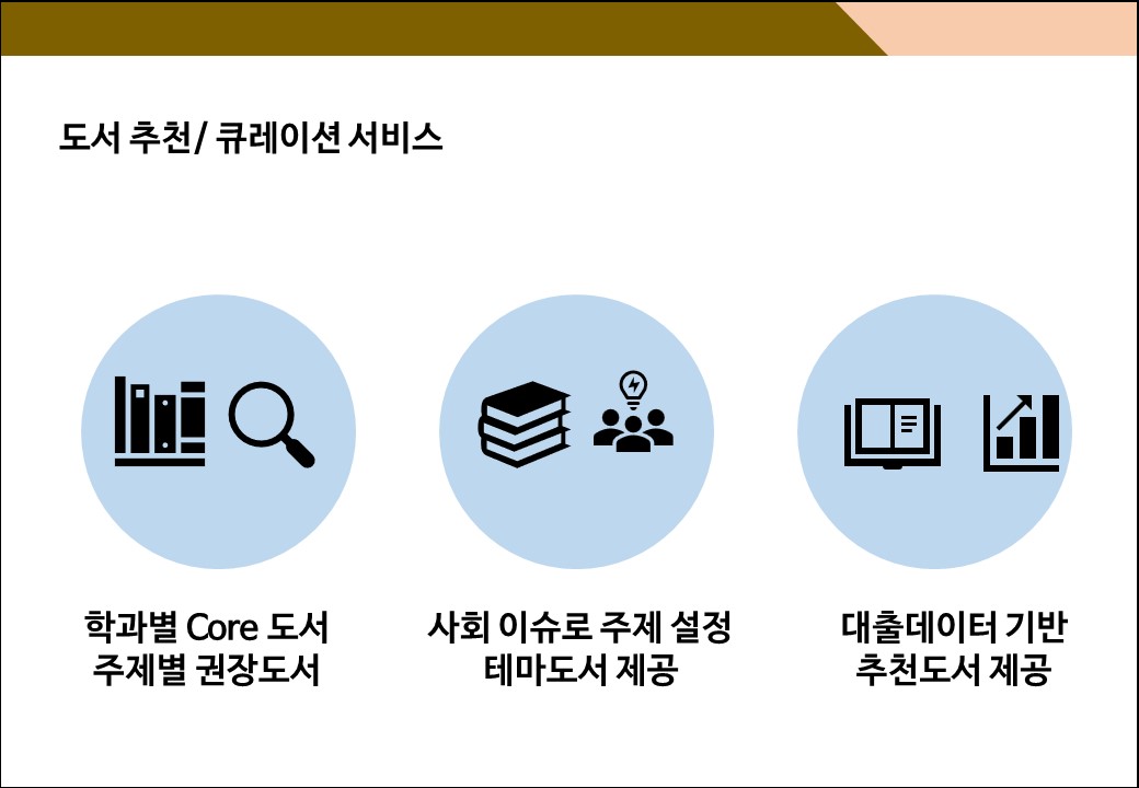이처럼 대학도서관에서는 소장중인 다양한 자원을 주제별, 이슈별로 수집/가공하여 제공하는 것이 필요하다.