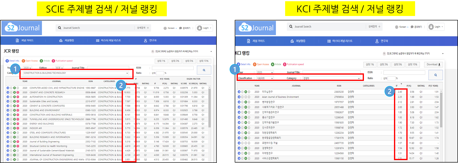 * JCR 주제분야별 랭킹을 한눈에 볼 수 있다.