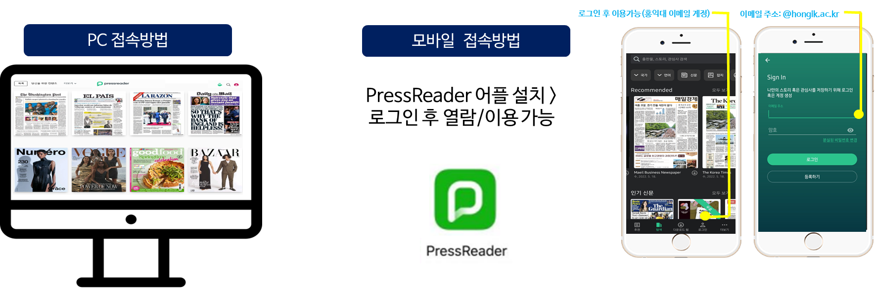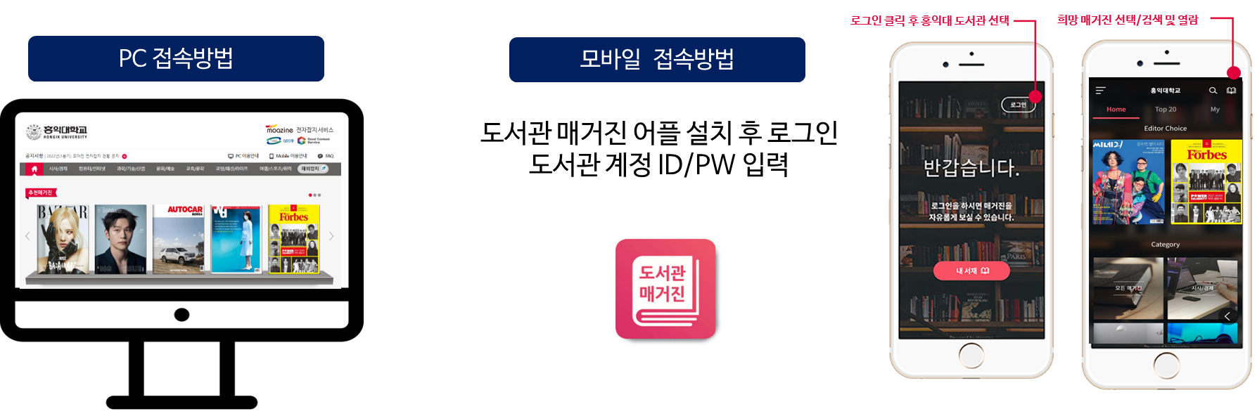 도서관에서 제공하는 연속간행물(신문, 잡지 등)를 온라인 컨텐츠를 통해 이용할 수 있다.