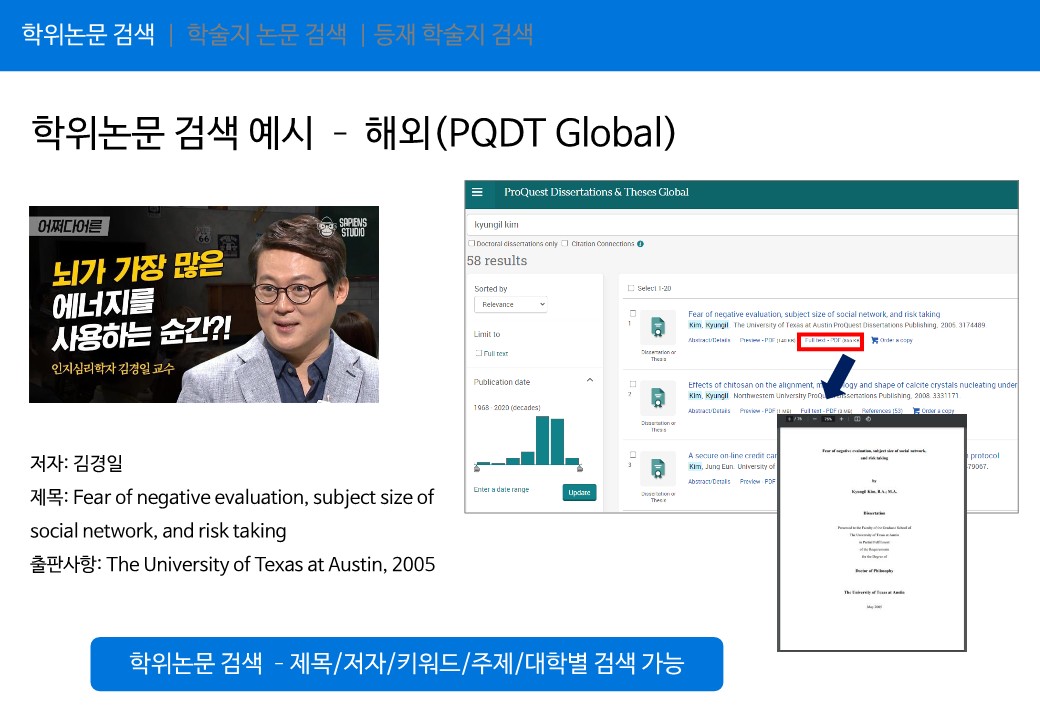 | 국외 학위논문 | PQDT Global(북미, 유럽) DDOD(북미 박사논문) |